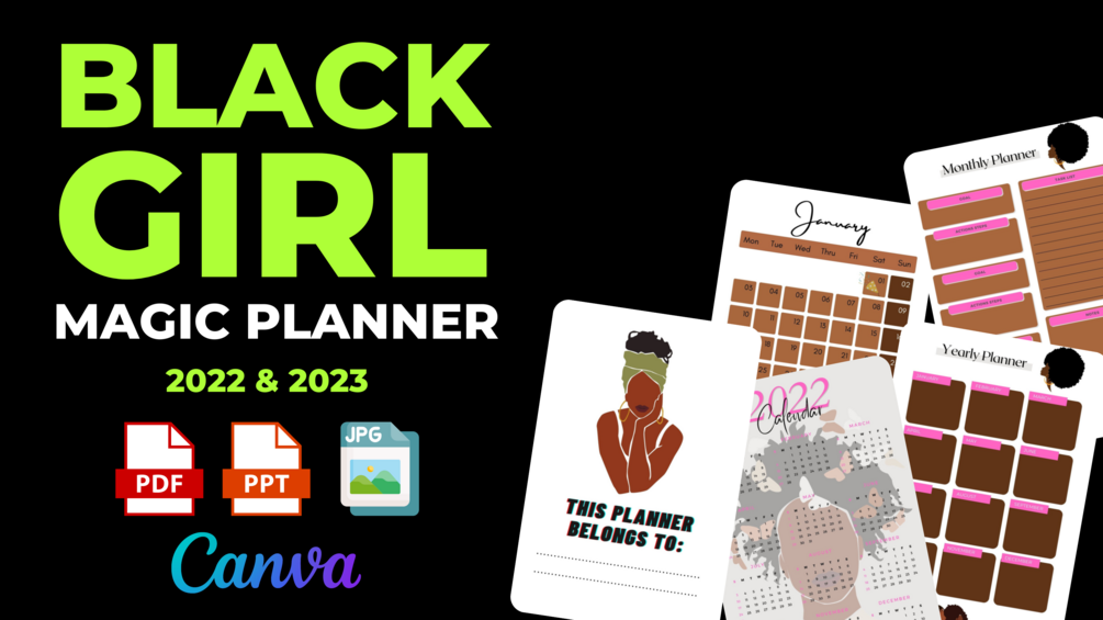 ***black girl magic planner 2022 & 2023 Canva Template Editable***